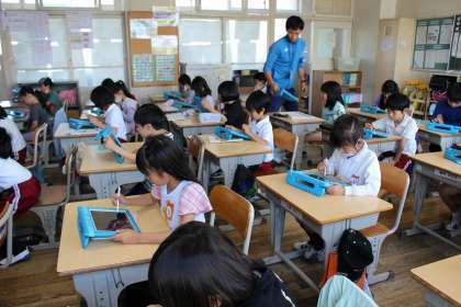 学区探検に向けて、若林東小学校区についてグーグルマップを使って調べました。音楽の時間には、かくれんぼで遊んでいる様子を思い浮かべながら歌いました。