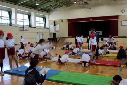 3・4時間目に体力テストを実施しました。50m走やボール投げ、立ち幅跳びなどを行いました。