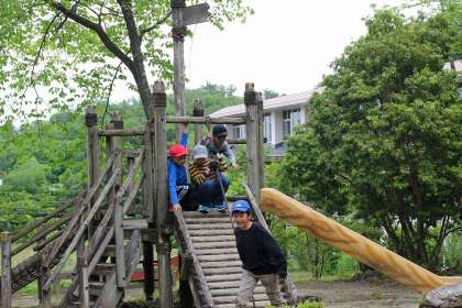 クラフトづくりを終え、アスレチックで遊びました。