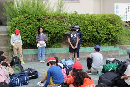 キャンプ 2日目帰着式 公開日 2024/05/22 更新日 2024/05/22 各学年から 2日間のキャンプを終え、まとめの式を行いました。みんなで誓った友情と思いやりをこれからも大切にしていってほしいと思います。