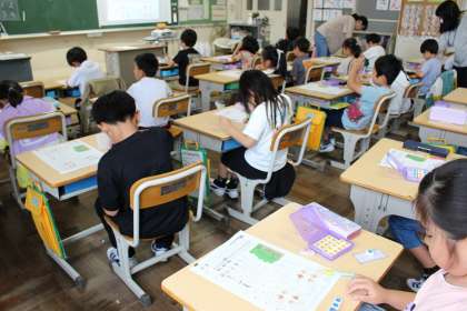 算数の時間には、「いくつといくつ」のテストをしたり、「ふえたりへったり」の問題を解いたりしました。