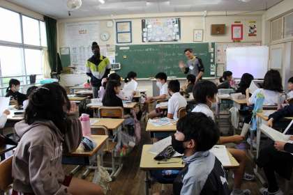 外国語の時間には、自分の名前のスペルや好きな教科について伝え合いました。