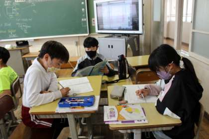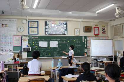 算数の時間には、小数でも面積や体積の公式が使えるかどうかを、みんなで考えました。