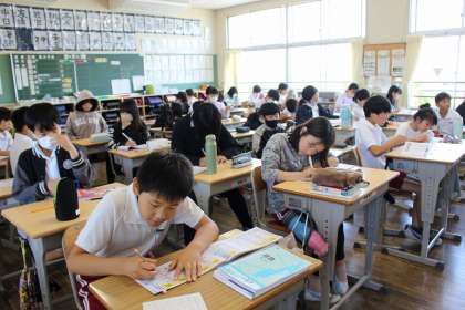 国語の時間には、新出漢字の練習をしました。家庭科の時間には、根菜や青菜のゆで方について学びました。