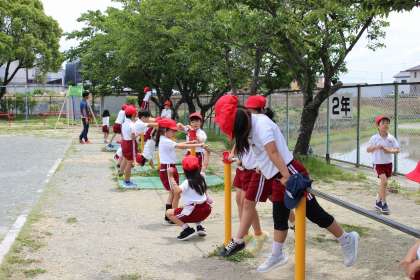 体育の時間には、鉄棒の練習をしたり、ドッジボールをしたりしました。