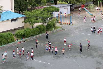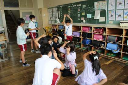 昼の放課に、ファミリー班遊びをしました。運動場でドッジボールや長縄をしたり、教室で何でもバスケットや宝探し、進化ゲームなどをしたりして、異学年の交流を深めました。