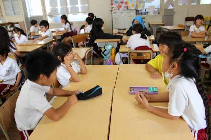 学活では、6月の目標についてグループで話し合いしました。理科の時間には、昆虫の育ち方の動画をみました。