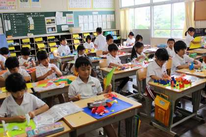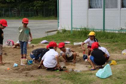 図工の時間には、紙を切って立てる工作に取り組みました。道徳の時間には、整理整頓のよさについて話し合いました。生活科では、砂遊びをしました。
