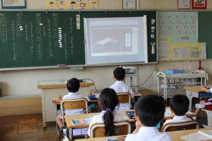 国語の時間には、伸ばす音のある言葉の書き方について学習をしました。「どうやってみをまもるのかな」では、スカンクの身の守りかたについて読み取りました。