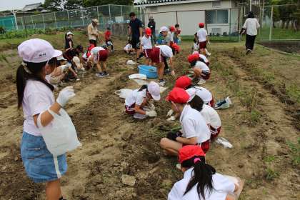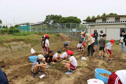 地域の方に教えていただきながら、ジャガイモ堀をしました。たらいにいっぱいのジャガイモを収穫できました。