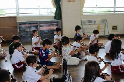 講師をお迎えして、リコーダー講習会を行いました。タンギングの仕方などを教えていただきました。