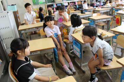朝の活動で、「たかまるタイム」を行いました。今日の目標は「はじめとおわりのあいさつをしっかりする」です。「どっちをえらぶ」をテーマに選んだ理由を伝え合いました。