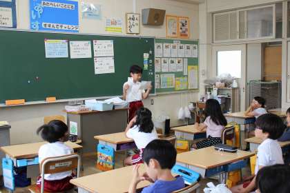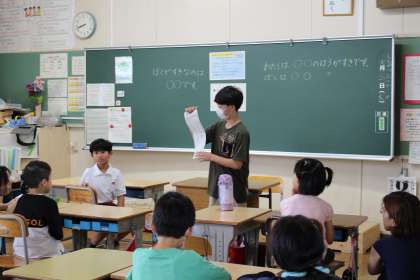 生活委員、給食委員、保健委員が各担当クラスに、7月のめあてを伝えに行きました。