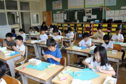 図工の時間には、粘土で「お弁当」作りをしました。生活科の時間には、アサガオの花の観察をし、絵日記をかきました。国語の時間には、「ことばあそびうた」でいろいろな表現を考えました。