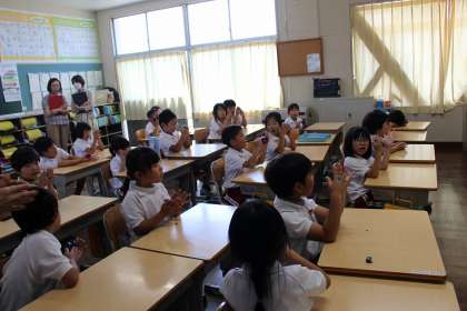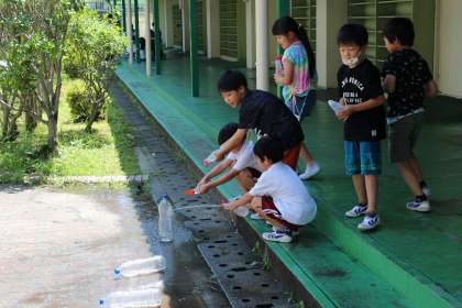 7月5日 1年生 公開日 2024/07/05 更新日 2024/07/05 各学年から 音楽の時間には、三文字と五文字の言葉を集め、リズム打ちを楽しみました。生活科では、マヨネーズの入れ物や食品トレーを使って水遊びをしました。