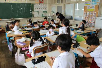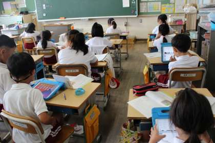 国語の時間には、「看板」と「ガイドブック」の文章を読み比べて、それぞれの良いところを考えました。