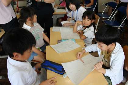 音楽の時間には、鍵盤ハーモニカでいろいろな音を見つけ、演奏しました。算数の時間には、ひき算のお話を作り、紹介し合いました。国語の時間には、楽しかったことやうれしかったことなどを日記に書いて、発表し合いました。