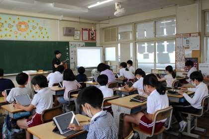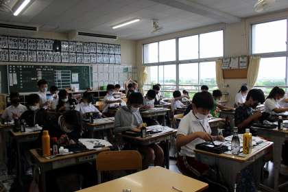 書写の時間には、筆順と点画のつながりに気を付けながら「友情」を書きました。夏休みに向けて、学習用タブレットのスクリーンタイムの設定を確認しました。