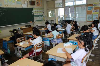 夏休みの学習や生活の目標を立てました。算数の時間には、100を超える数のテスト問題をみんなで復習しました。