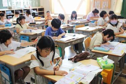 国語の時間には、漢字の練習をしたり、夏休みの思い出をかいたりしました。
