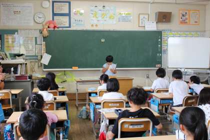 国語の時間には、詩を読んで面白いところを見つけたり、お話の世界に行けたらやってみたいことを考えたりしました。また、夏休みの思い出発表をしました。
