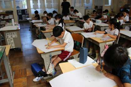 図工の時間には、読書感想画「じごくのそうべえ」の下描きをしました。