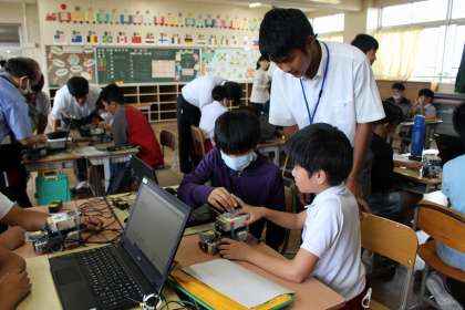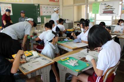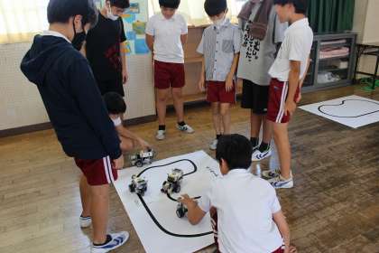 豊田工科高校の出前授業で、3組の教室では、50周年記念プレートの製作をしました。第2多目的室では、LEGOロボットを使って、プログラミングをしてロボット制御を体験しました。
