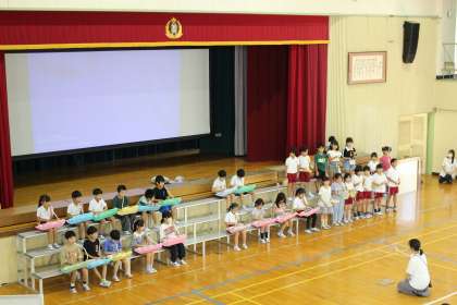 学習発表会では、自分たちで作ったお祭りのリズム発表をしたり、ボディパーカッション、バンブーダンス、合奏などを披露したりしました。
