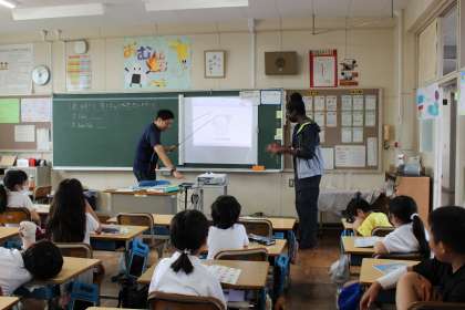 外国語活動では、好きな色やスポーツ、食べ物を英語で伝え合いました。