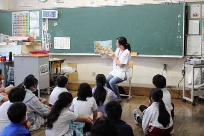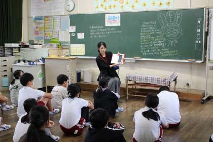 朝の活動の時間には、4〜6年生がボランティアの方に読み聞かせをしていただきました。