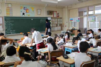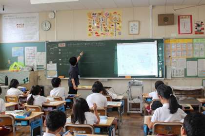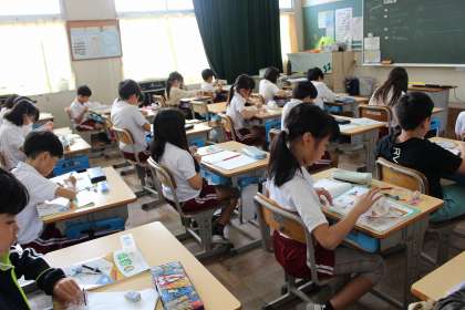 算数の時間には、コンパスを使って線の長さ比べをしました。道徳の時間には、きまりは誰のためにあるのかについて考えました。