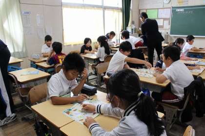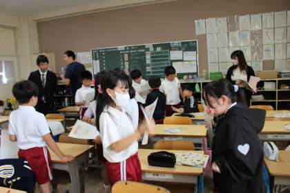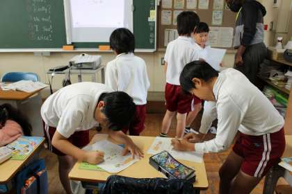 外国語活動では、食べ物や色、スポーツの言い方について、ドンじゃんけんゲームをしながら慣れ親しみました。また、好きなものを尋ね合うインタビューゲームをしました。