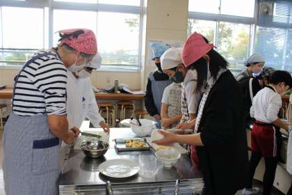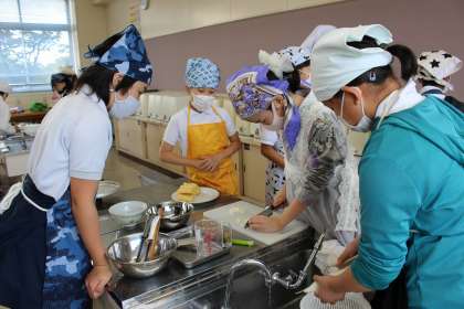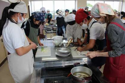1組が調理実習を行いました。煮干しでだしを取り、みそ汁づくりをしました。