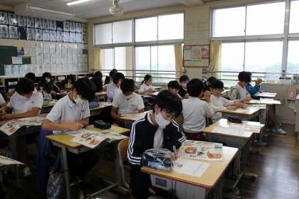 外国語の時間には、慣れ親しんだ「衣類等」の単語を使って、クリスクロスゲームを楽しみました。図工の時間には、未来の自分の姿や夢を作品に表すために、デザイン画を描きました。