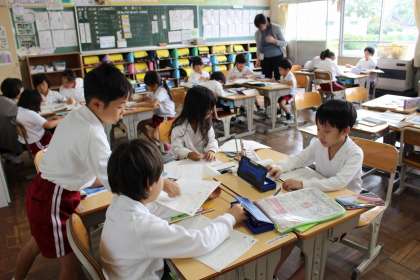音楽の時間には、「ひのまる」の演奏テストをしました。国語の時間には、「いろいろなふね」に出てくる船の役割や仕組みについて、まとめをしました。体育の時間には、運動会に向けて徒競走の練習をしました。