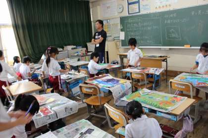 図工の時間には、読書感想画の色塗りをしました。運動会に向けて各クラスでも踊りの練習を進めています。