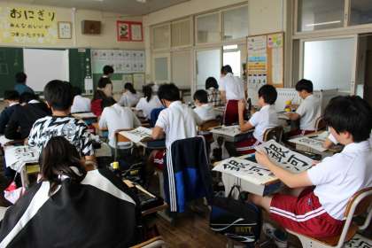 書写では、部分の組み立て方に気を付けながら「銀河」を書きました。