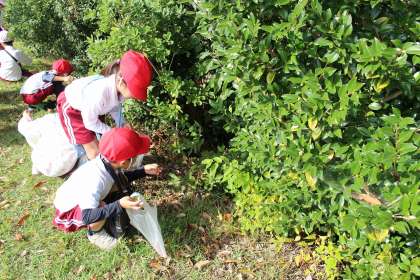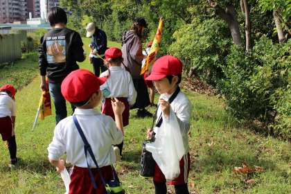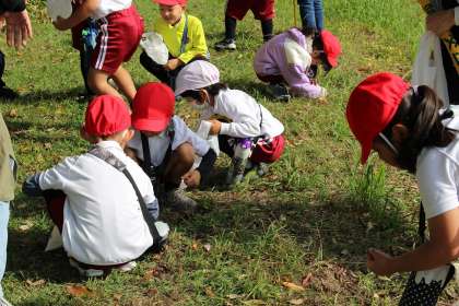 逢妻男川の堤防でドングリ拾いをしました。いろいろな大きさのドングリを集めることができました。