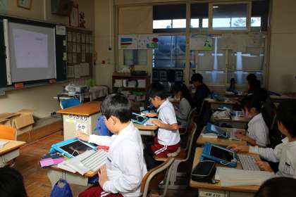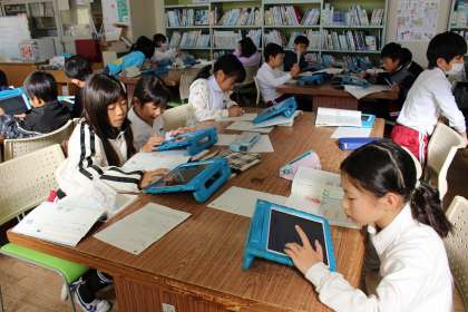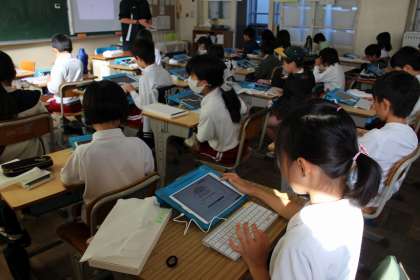 学習用タブレットを活用して、タイピングの練習をしました。国語の時間には、自分の身の回りにある道具について、興味をもったものの作られ方などについて調べ学習をしました。