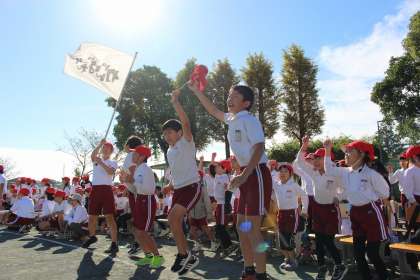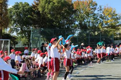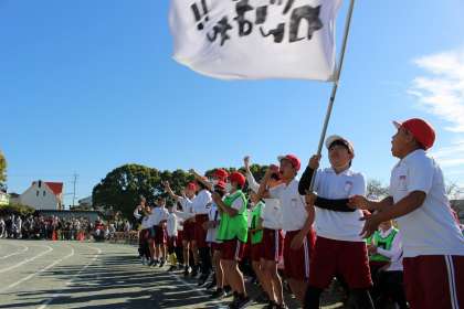秋空の下、元気いっぱいの応援団を中心に全校で運動会を盛り上げました。