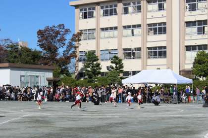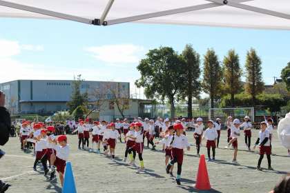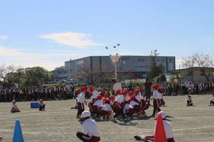 ゴールを目指して力いっぱい走ったり、「最高到達点」の曲に合わせてかわいらしいダンスを披露したりしました。玉入れでは、みんなで力を合わせて頑張りました。