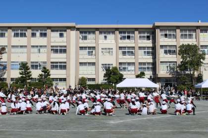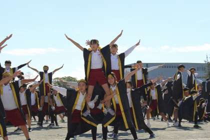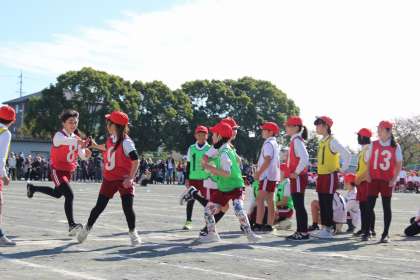 リレーでは、みんなで心を一つにしてバトンをつなぎました。力いっぱい綱を引いたり、曲に合わせてスタンツの技やダンスを披露するなど、最後まで全力で競技にのぞみました。