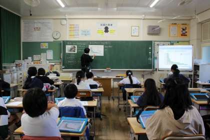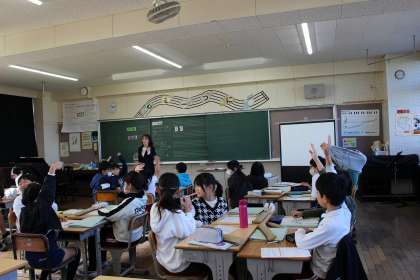 社会の時間には、枝下用水にかかわる資料から、用水の働きについて考えました。音楽の時間には、2つの旋律の重なり合いを味わいながら鑑賞することができました。算数の時間には、問題の意味を読み解き、グループで相談しながら立式の説明をすることができました。