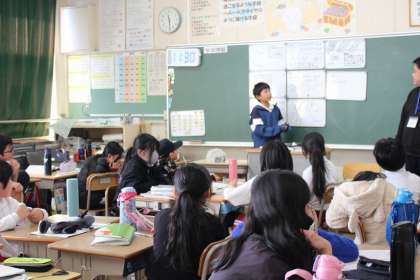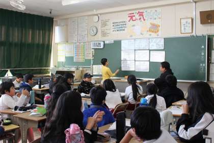 算数の時間には、平行四辺形の面積の求め方をグループで話し合いながら考えました。