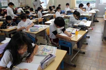 11月26日 3年生 公開日 2024/11/26 更新日 2024/11/26 各学年から 図工の時間には、「くぎうちトントン」のデザイン画をもとに、板に下書きをしたり、木切れをボンドでつけたりしました。