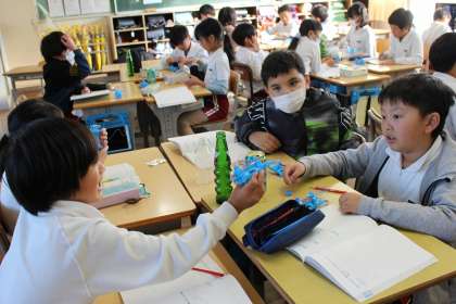 体育の時間には、キックベースやドッジボールをしました。理科の時間には、電気を通すかどうかの実験をしました。