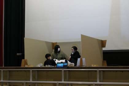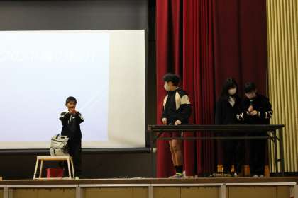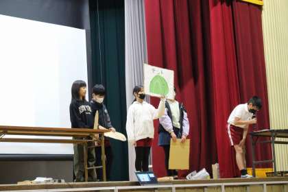 「防災」をテーマに、防災グッズや防災食、応急手当など、グループで調べたことを発表ノートや劇で発表しました。
