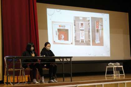 「防災」をテーマに、防災グッズや防災食、応急手当など、グループで調べたことを発表ノートや劇で発表しました。