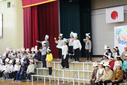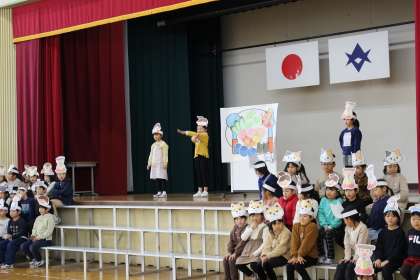 劇「サラダでげんき」の発表をしました。りっちゃんのお母さんが元気になるようなサラダづくりをしました。