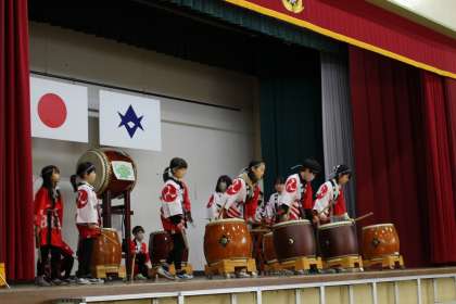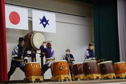 50周年記念太鼓を地域講師の方が作ってくださり、和太鼓クラブが演奏を披露しました。
